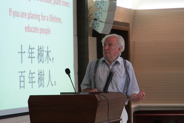 Ringsdorf教授的主要研究领域是多功能超分子体系的分子工程、高分子液晶分子结构和功能化、模拟生物膜过程等,他多年一直关注和促进中国化学与世界各国化学的交流,为我国培养了很多优秀的人才,并于2001年获得中华人民共和国友谊奖。此次报告,Ringsdorf教授从1979年他初来中国的一些感受出发,高度肯定了中国近几十年在经济和科学研究方面所取得的快速发展,并着重强调和论述了科学研究需要广泛深入的交流与协作。作为科研工作者的高校教师不仅肩负着推动科学发展的重任,还应该积极承担社会发展的重任。Ringsdorf教授独到的观点使在场师生受益匪浅,他幽默诙谐的语言同时也给大家留下了深刻的印象。
