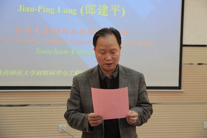报告尾声,郎教授用简短的时间向我们展示了苏州大学美丽的校园风光和四季景色。他还就苏州大学材料与化学化工学部近年来在学科发展、人才培养、科研条件、基金申请、文章发表等方面作了详细介绍。他期待陕西师范大学与苏州大学在未来能有更多的交流合作,并欢迎我校学生前往苏州大学继续深造。