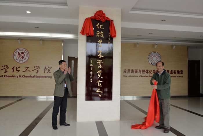 80级校友符同权、贾天牛共同为牌匾揭幕