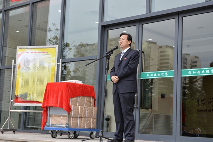 70周年校庆受赠仪式在致知楼南门隆重举行。我校党委副书记司晓宏教授、中国工程院院士张生勇教授、著名分析化学家章竹君教授、我校原副校长吕九如教授以及各级校友出席了活动。仪式由十博