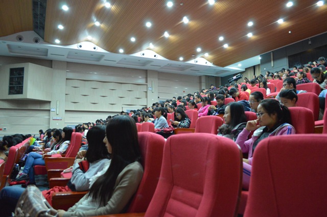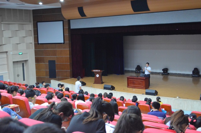 2012级本科生做入院教育报告。报告会由辅导员牟朝丽主持。