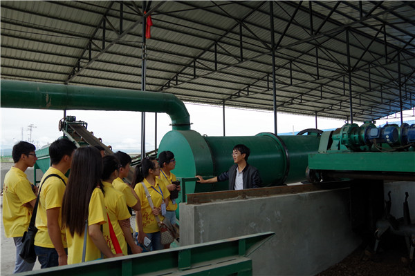 7月10日宣讲团一行前往陇县惠丰农牧科技有限责任公司进行了参观学习。陇县惠丰农牧科技有限责任公司是一家以农作物秸秆、牲畜粪便等为主要原料生产有机肥的绿色肥料生产企业。在工作人员的带领下,团队成员参观了原料厂、发酵池、加工车间、成品库、沉淀池等,了解了整个有机肥的生产工艺流程。参观结束后,团队成员与该公司负责人进行了交流,进一步了解了有机肥在我国的发展现状和趋势以及其在人类生产生活中的重要作用,探讨了化学在整个有机肥生产工艺中的具体应用。