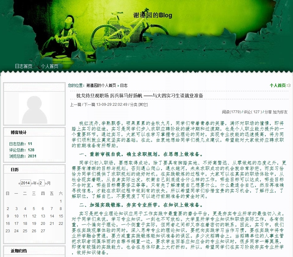 谢遵园老师的该篇博文针对实习生的境遇体验,饱含深切的人文关怀,从一名知心朋友的角度,以关爱之心、真诚之意为毕业生的求职准备建言献策,用真诚、和蔼与鼓励引导学生对就业问题的关注与思考,使学生在特定的阅读体验中获得了态度、动机、价值观和其他就业心理的发展。该博文以解决学生实习与就业过程的实际问题为落脚点,通过富于人文气息的情感沟通,让学生在浓浓师爱的浸润中“亲其师,信其道”,自觉主动地沿着辅导员指出的方向迈出。该博文文风朴实,事例典型,观点明确,逻辑清楚,在关键问题的论述上动之以情、晓之以理、寓理于情、情理结合,产生了良好的动情效应。