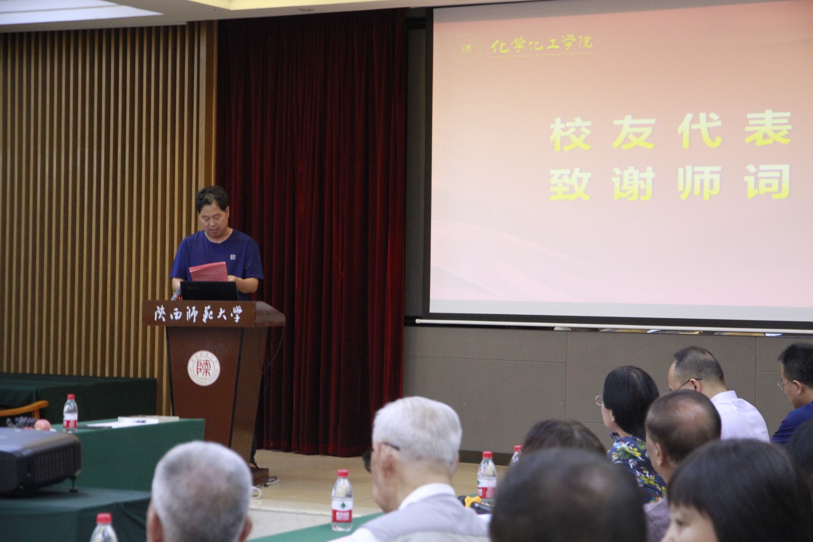 图书馆馆长张国春教授、江苏省特级教师、泗阳双语实验学校支部书记张曼丽致谢师辞。张国春带大家共同回忆了在陕西师范大学度过的难忘时光。他表示,“厚德、积学、励志、敦行”的校训铭刻在每一位学子的心中,这激励着大家扎根基层,踏实工作,用实际行动诠释校训的真正含义。张曼丽动情地说到,时间的匆匆流逝,无法磨灭对母校的拳拳之情;奋斗的艰辛路上,心中永远铭记的是母校老师的淳淳教导。