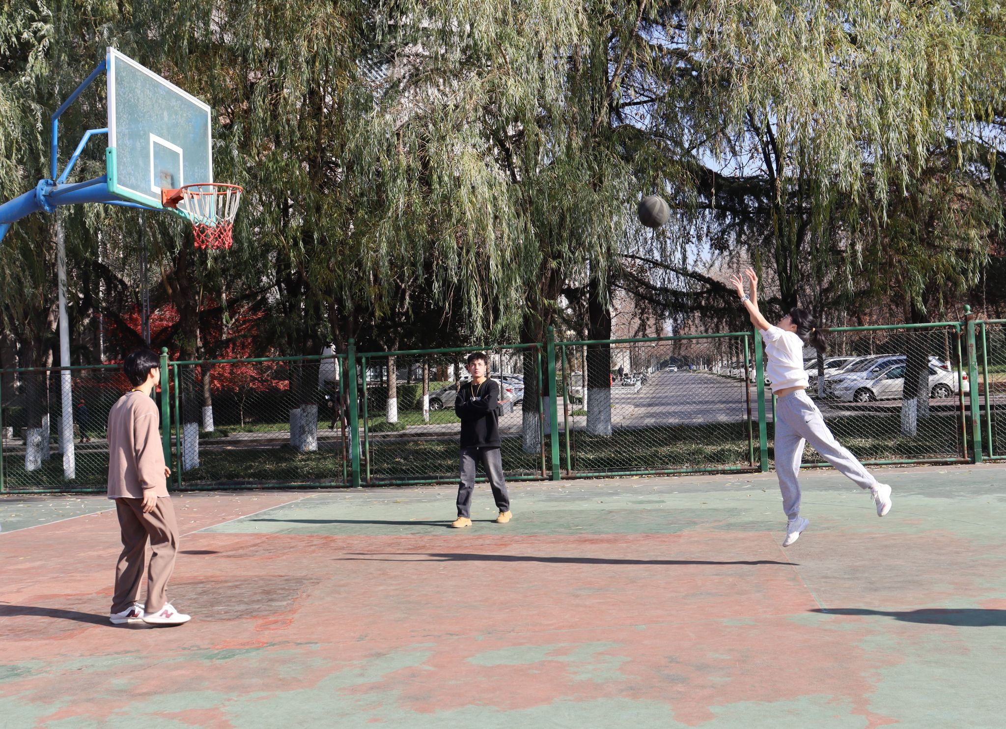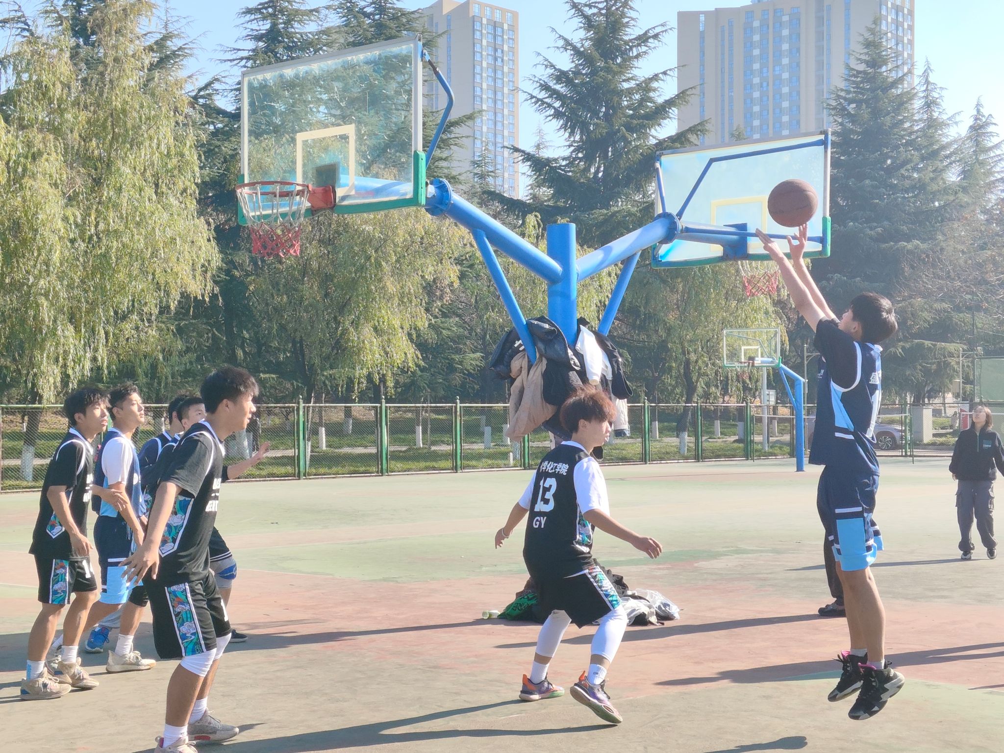 球场上,默契的配合传递着同学情谊,意气风发的姿态彰显着体育精神。你追我赶,你来我往,激烈交锋。球员们熟练运球、传球、投篮,举手投足间展现了团结的力量。