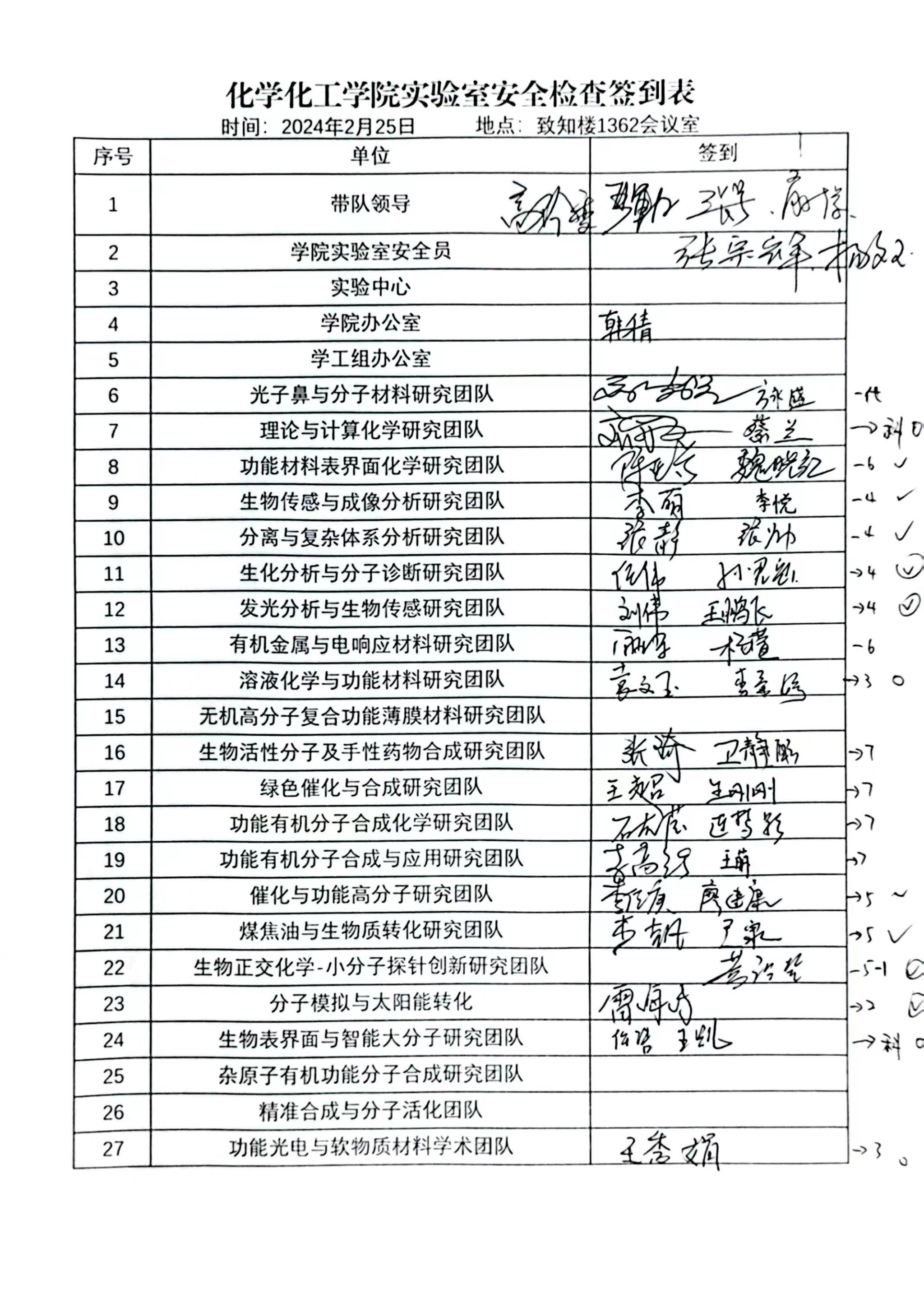 上一年度的实验室安全情况进行总结,提出要多反思并形成互相学习、互相交流的良好平台。接着,各检查小组分别对致知楼、化工楼小三层、科研大楼中科研实验室、教学实验室、公共区域逐一进行检查。