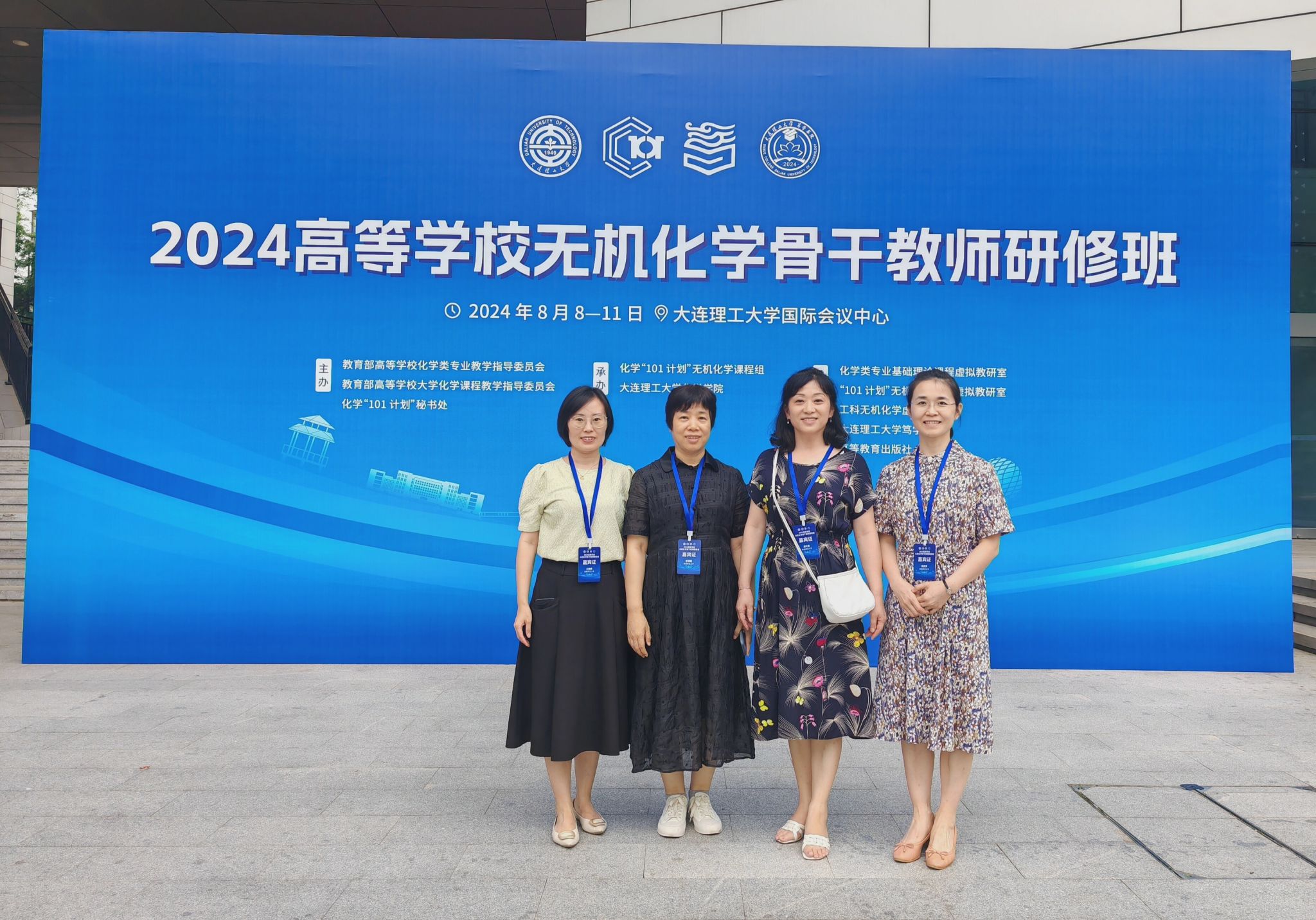 承办的高等学校无机化学骨干教师研修班在大连理工大学举行。高玲香书记组织和带领无机化学教学团队李淑妮、魏灵灵和王艳艳老师参加培训学习。