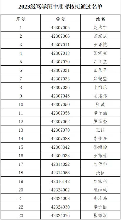 根据教务处《关于做好2023级“人文科学试验班”“理科试验班”中期考核及二次选拔工作的通知》和《十博(10bet)亚洲官方网站 2023级化学笃学班中期考核和二次选拔实施办法》,十博 对2023级化学笃学班进行了中期考核,现将结果予以公示,公示时间:2024年9月20日-9月22日。十博(10bet)亚洲官方网站 23名学生通过考核,结果如下(按照学号顺序排序),现予以公示。如有异议者,请与十博 党委副书记、纪委书记贾颍辉同志联系,联系电话:13572524231,邮箱:[email protected]。