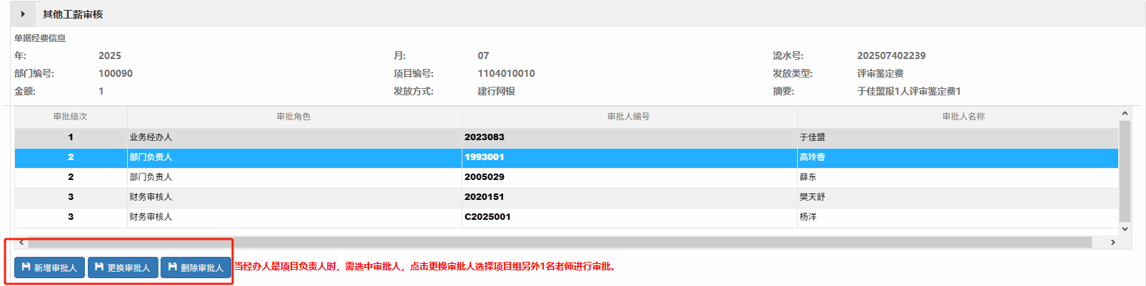 ①经办人和审批人不能是同一人。当经办人是项目负责人时,需先选中项目负责人/部门负责人,再点击更换审批人。12开头的经费(科研类经费)及130103开头的经费(基本科研业务费)可选择项目其他老师审批,其他经费选择肖新军副院长(工号:2002078)进行审批。