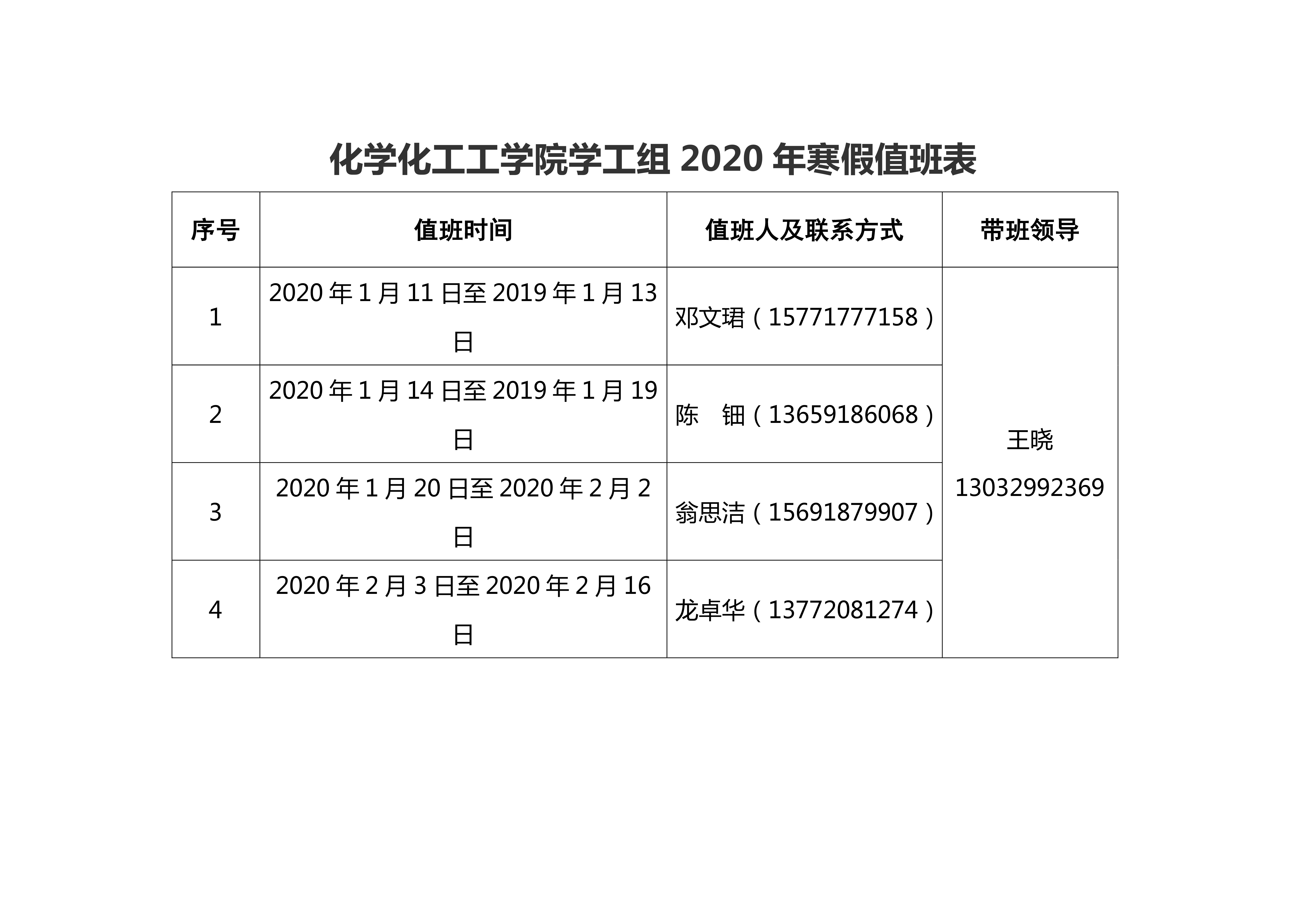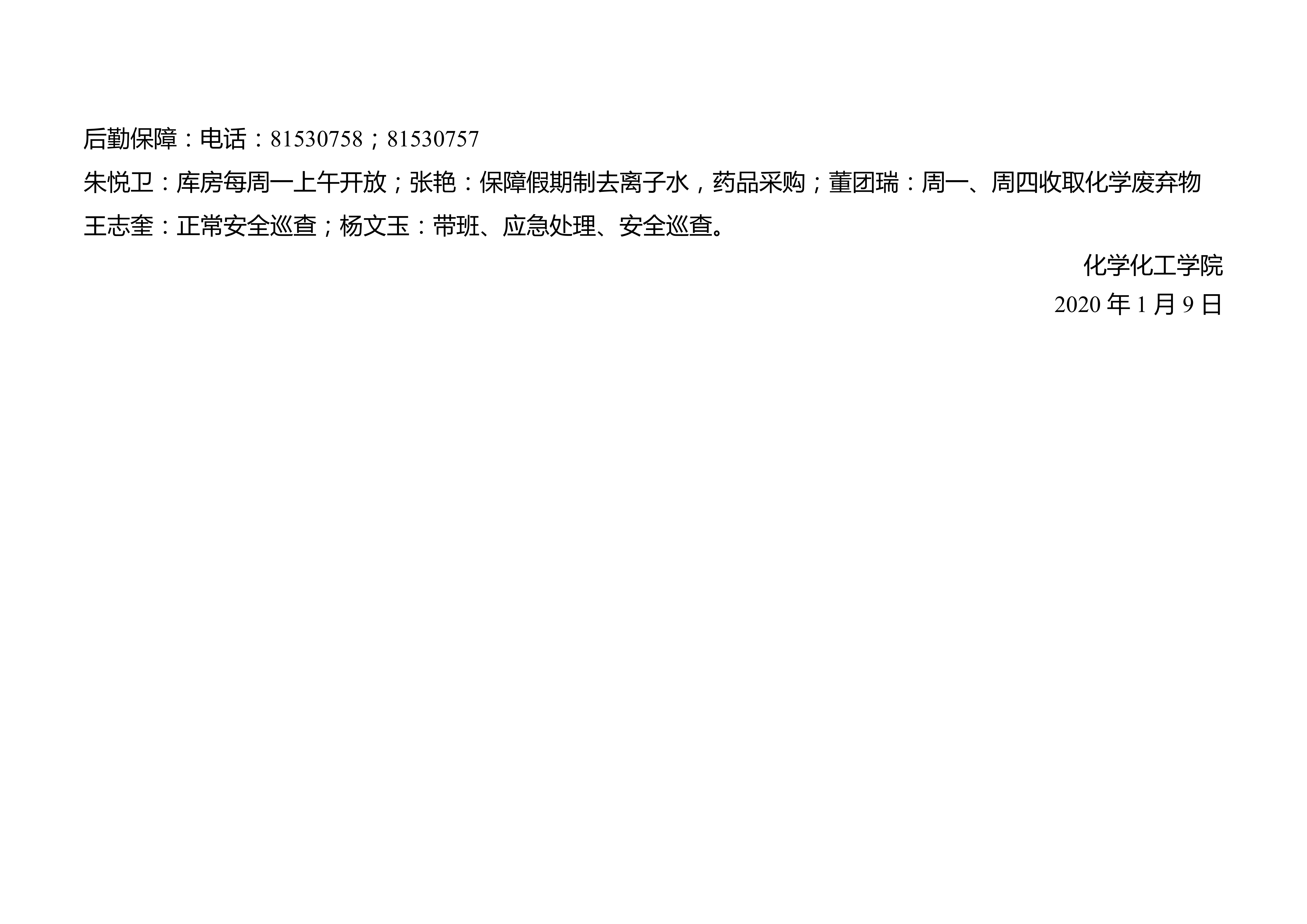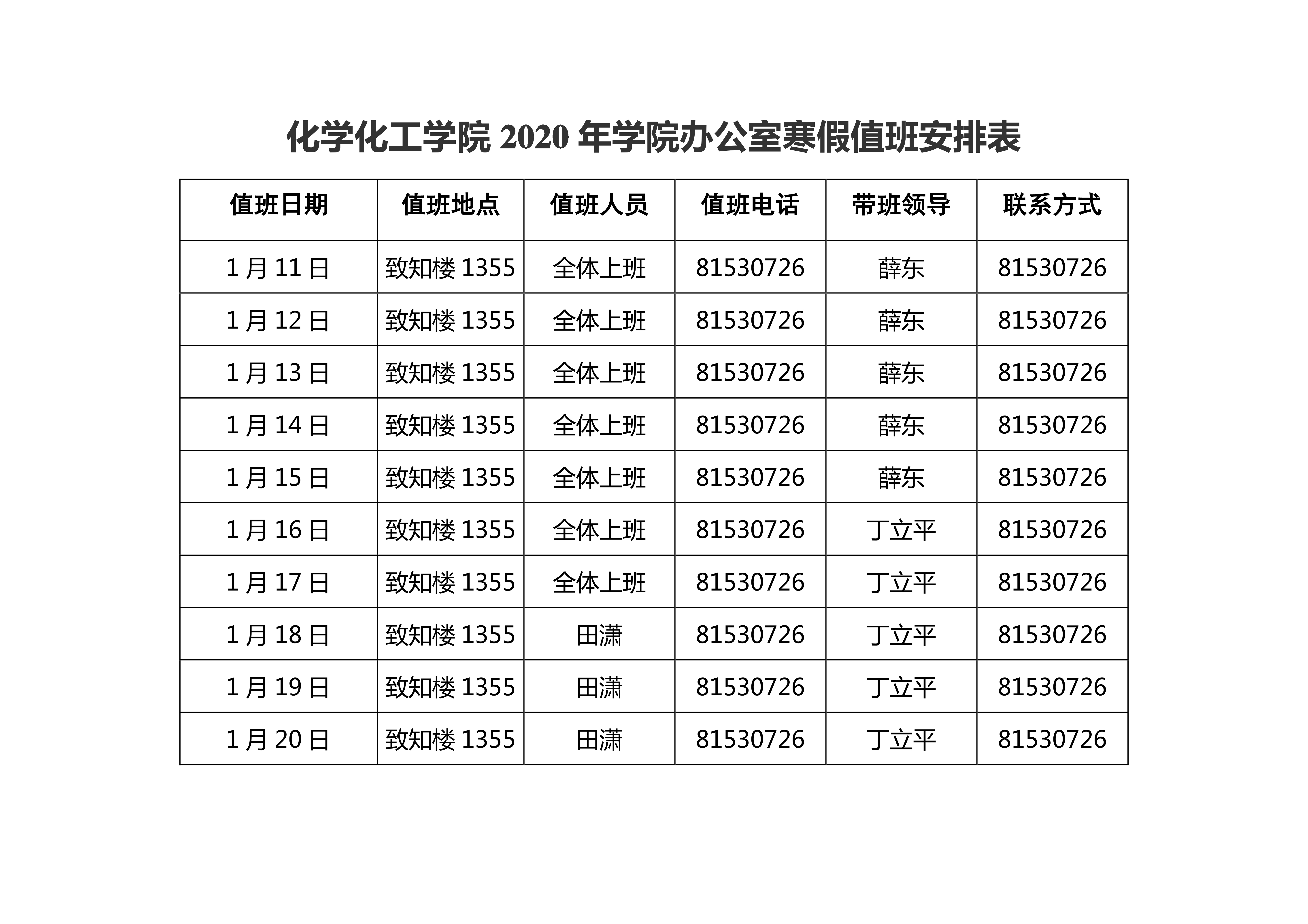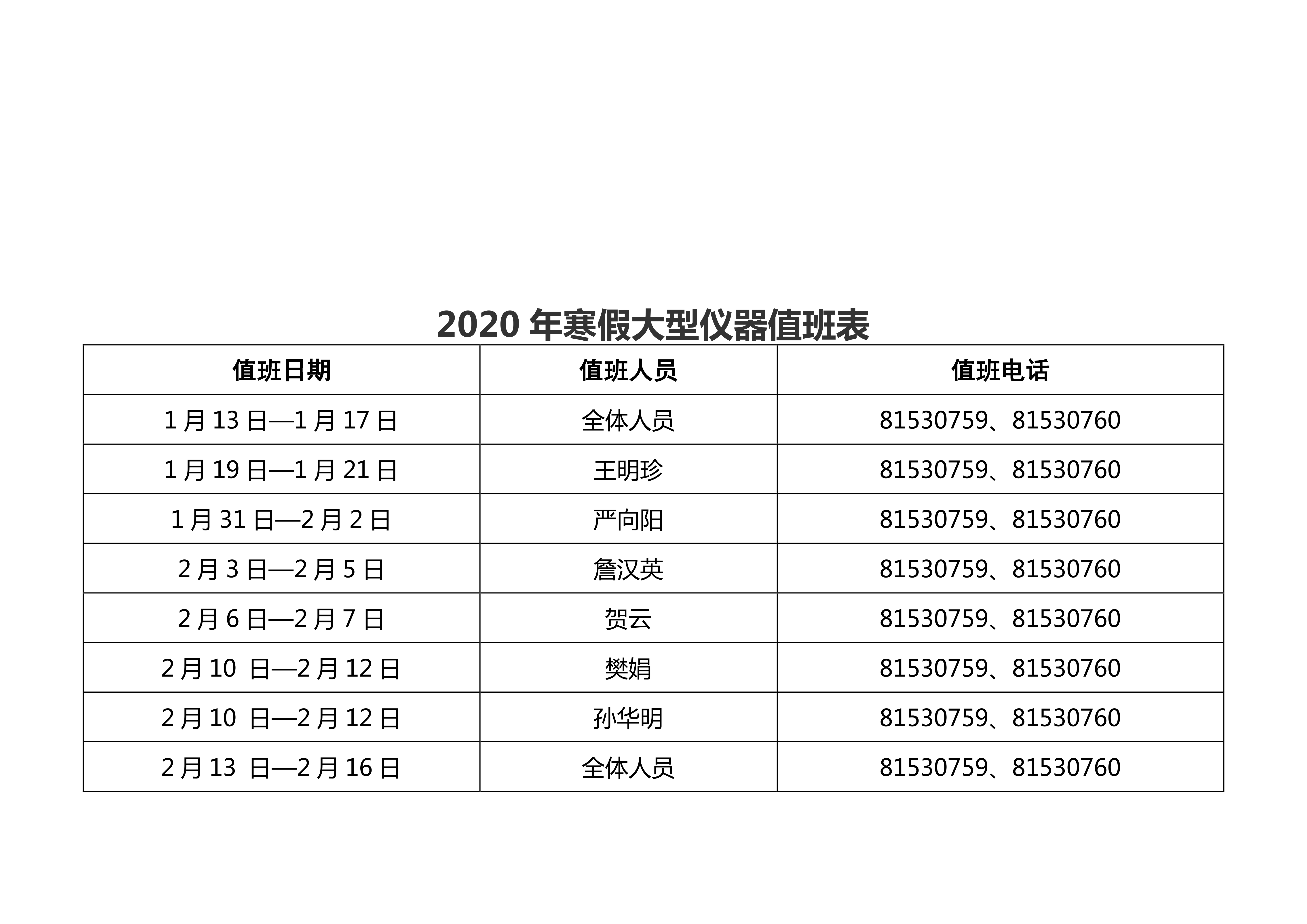 十博(10bet)亚洲官方网站 2020年寒假值班安排表