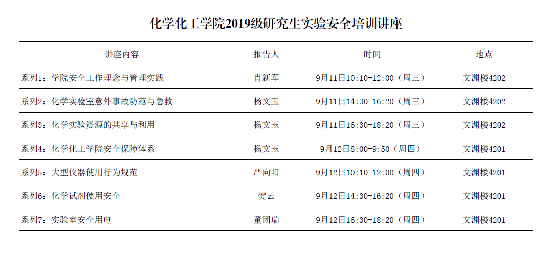 1、实验室安全培训课程为研究生必修课程,要求全体研究生必须参加;如确因特殊情况无法参加本次培训,请于9月9日下午5:00前将请假信息发送至[email protected],请假信息包含学号、姓名、专业、请假原因、需请假的讲座序号,十博 将统一安排补课。