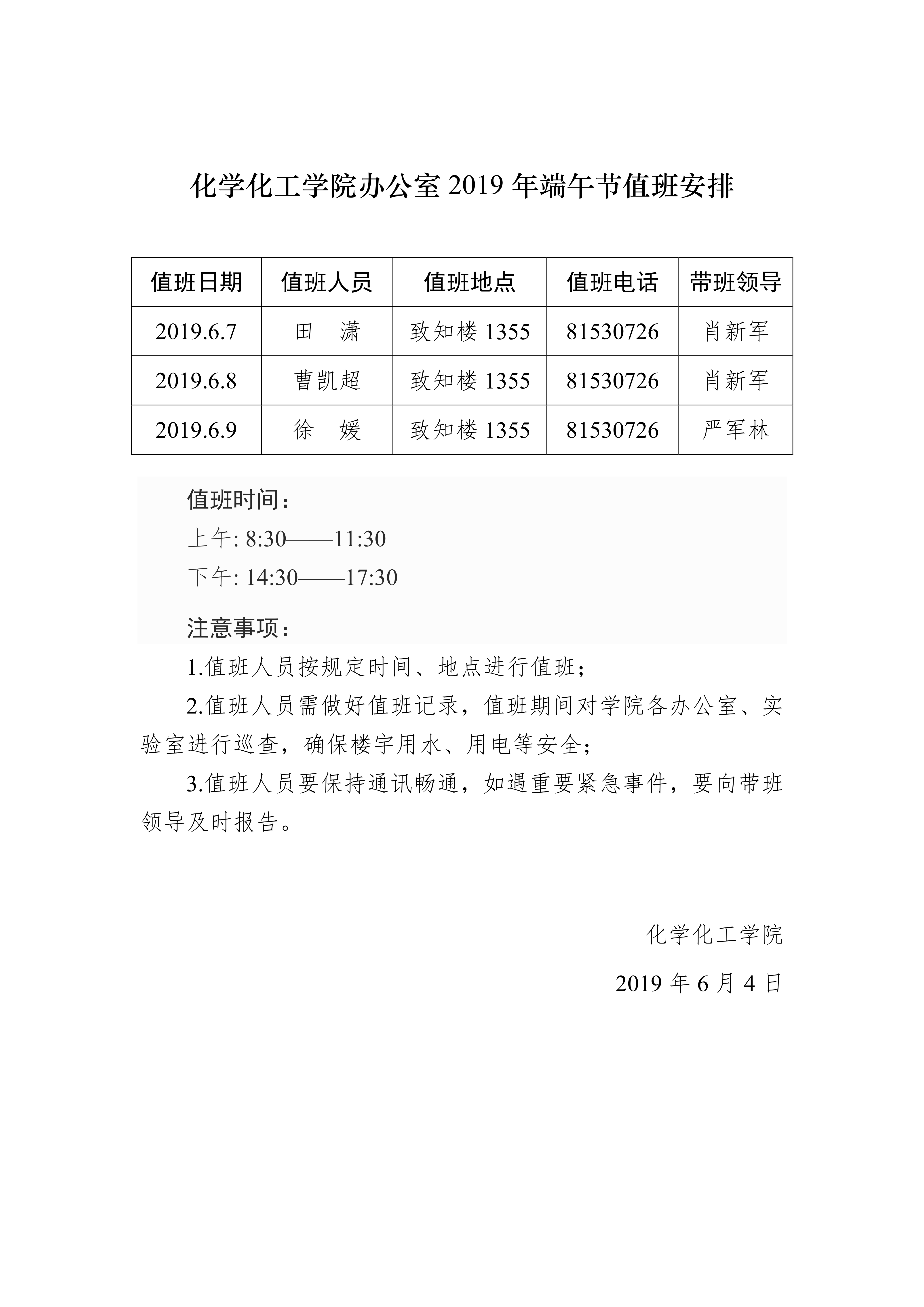 十博(10bet)亚洲官方网站 办公室2019年端午节值班安排