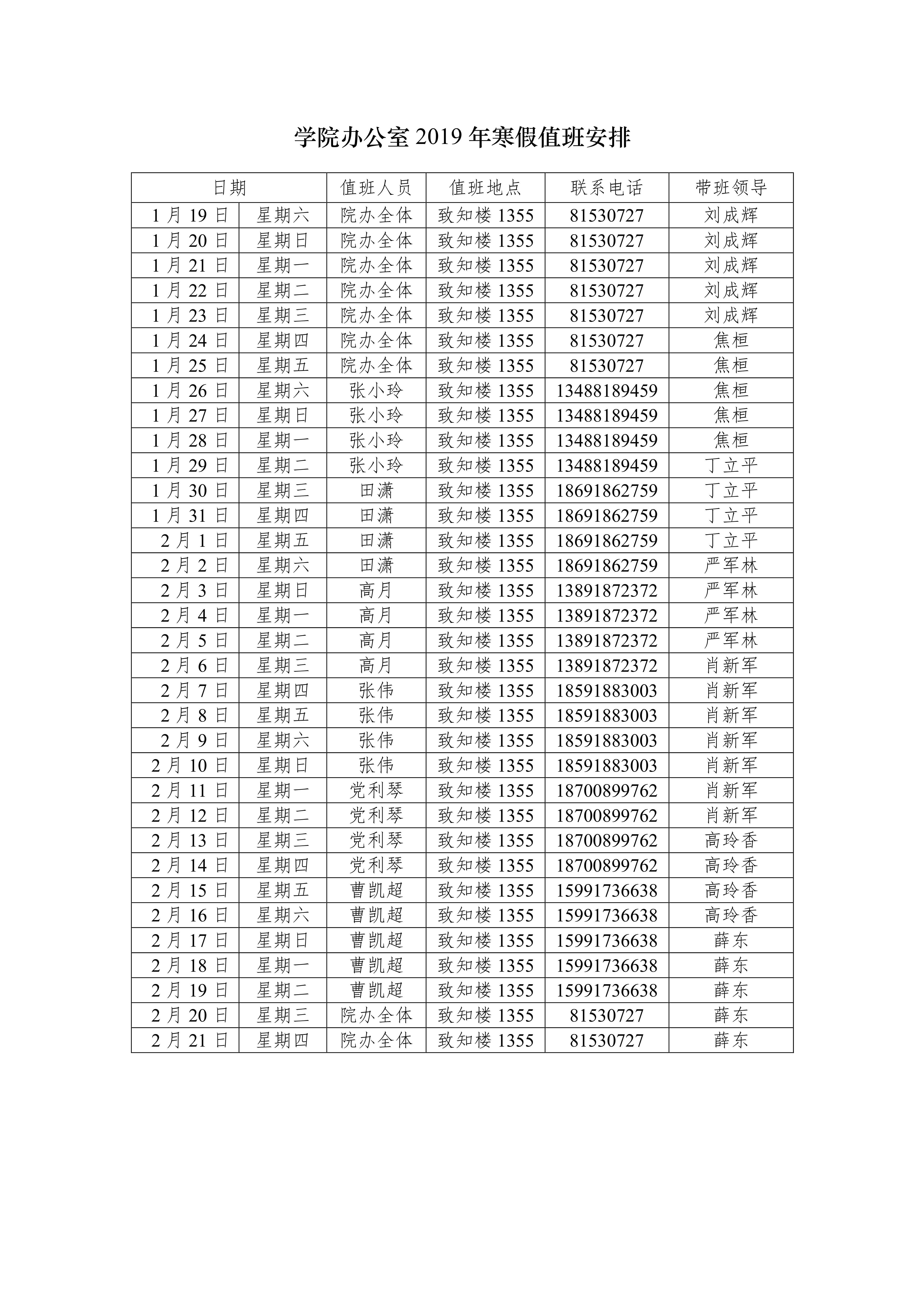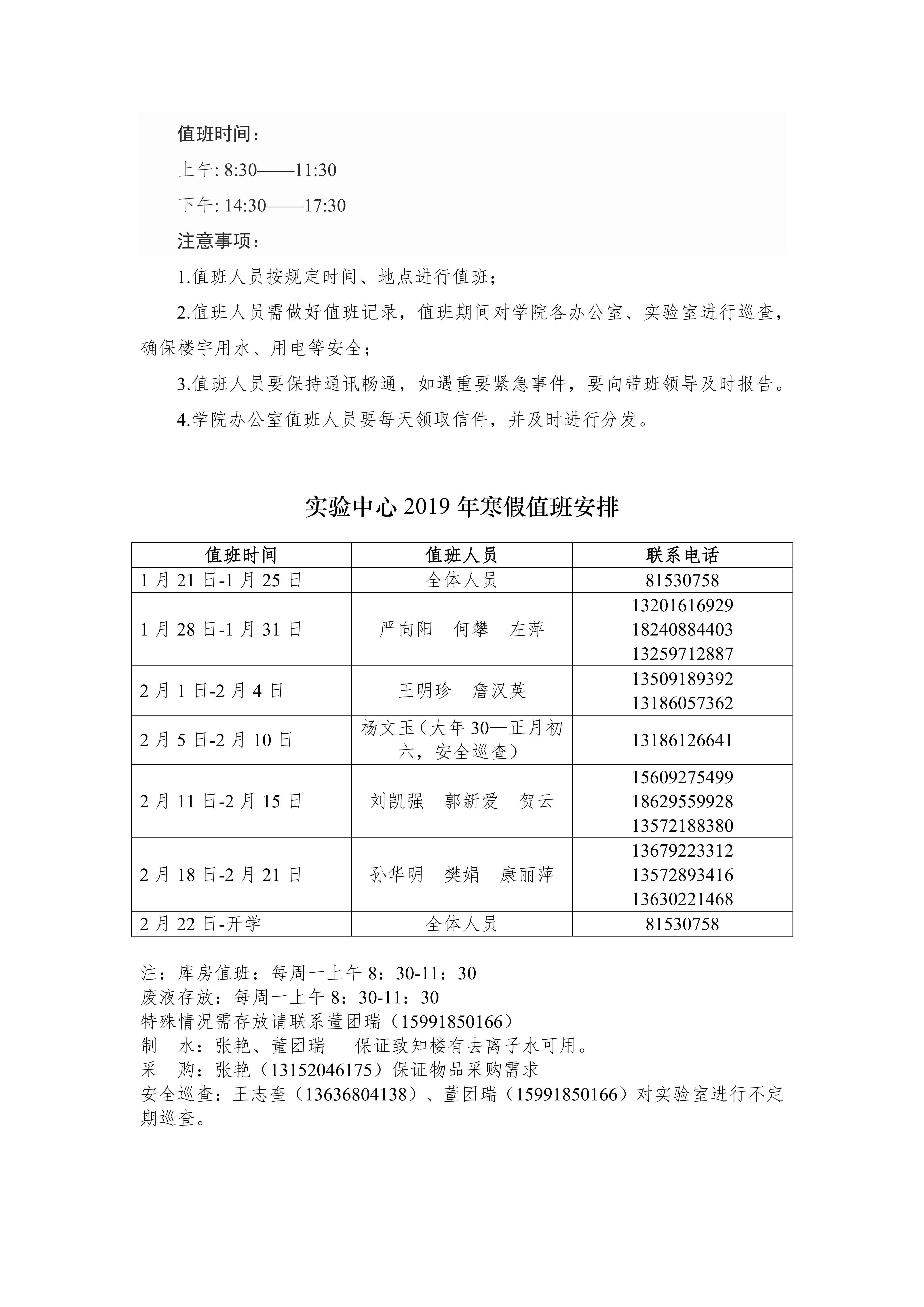 十博(10bet)亚洲官方网站 2019年寒假值班安排