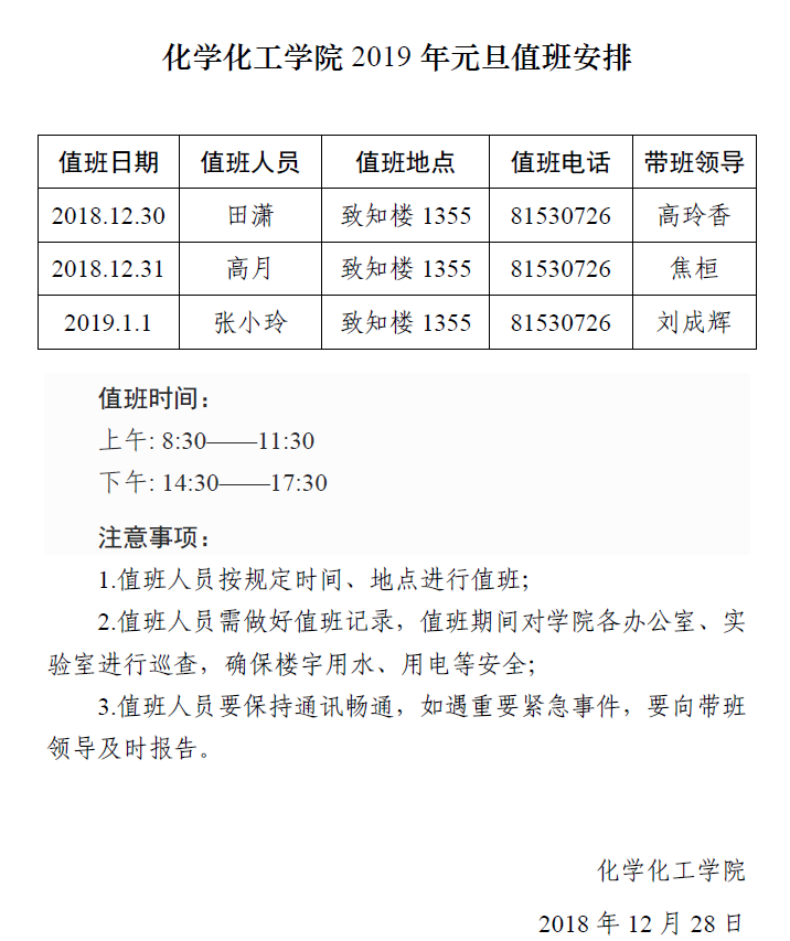 十博(10bet)亚洲官方网站 2019年元旦值班安排