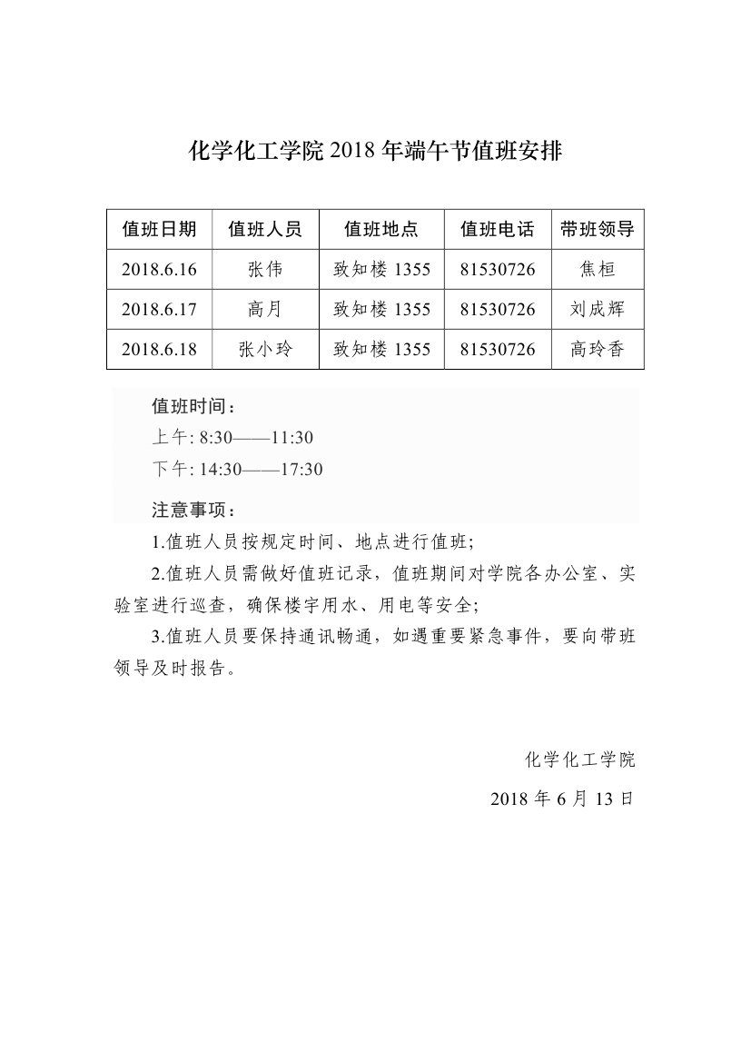 十博(10bet)亚洲官方网站 2018年端午节值班安排