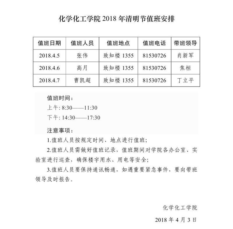 十博(10bet)亚洲官方网站 2018年清明节值班安排