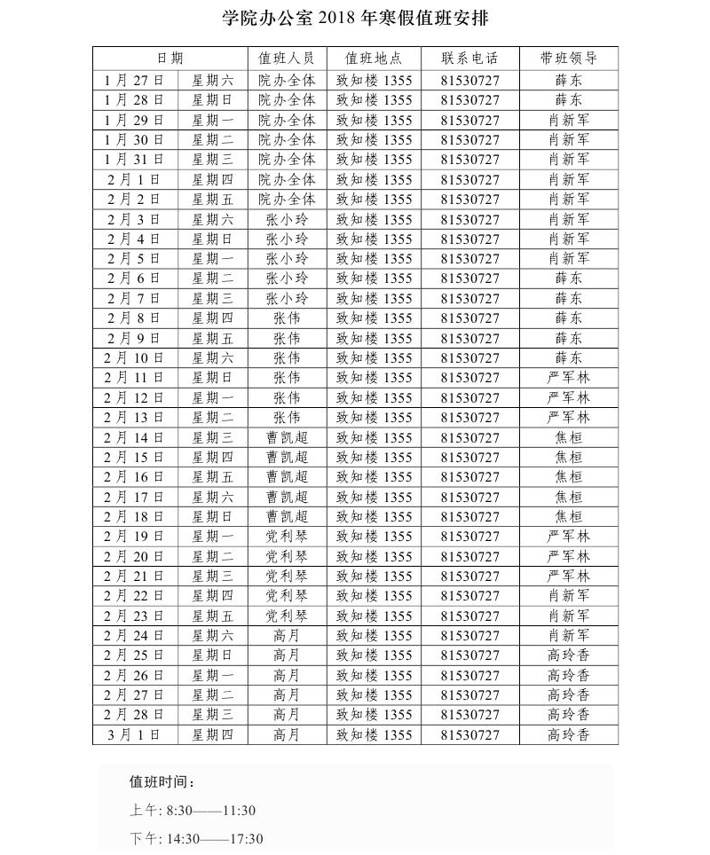 十博(10bet)亚洲官方网站 2018年寒假值班安排