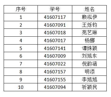 根据《陕西师范大学卓越教师实验班中期考核、二次选拔实施办法》以及《十博(10bet)亚洲官方网站 卓越教师实验班中期考核、二次选拔实施方案》,十博 于2017年9月20日下午对十博(10bet)亚洲官方网站 2016级化学卓越教师实验班同学进行二次选拔,经二次选拔考核工作小组对学生进行综合素质面试考核并结合学生大一学年必修课成绩,十博(10bet)亚洲官方网站 有10名学生通过考核,结果如下,现予以公示。