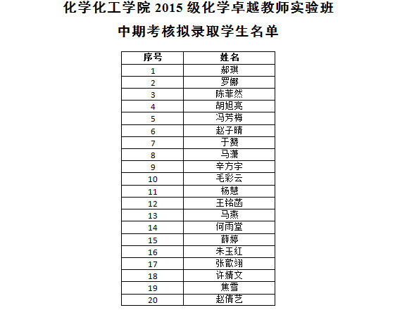 按照《陕西师范大学卓越教师实验班中期考核、二次选拔实施办法》、《十博(10bet)亚洲官方网站 2015级卓越教师实验班中期考核、二次选拔考核方案》,十博 对2015级卓越教师实验班学生进行了中期考核,通过考核,拟录取学生名单如下: