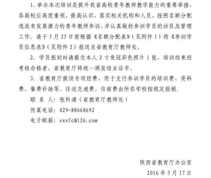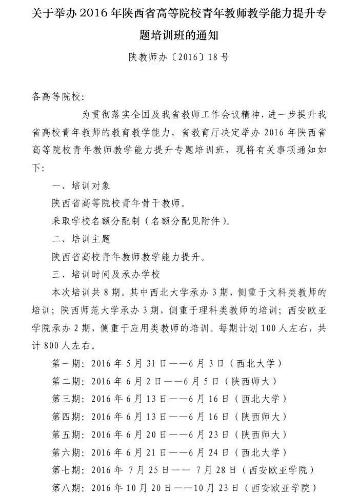 附件一:2016年陕西省高等院校青年教师教学能力提升专题培训班参训教师信息表