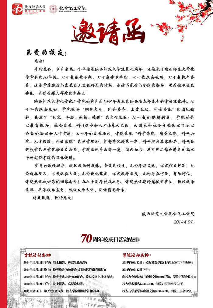 《七十年校庆校友邀请函》