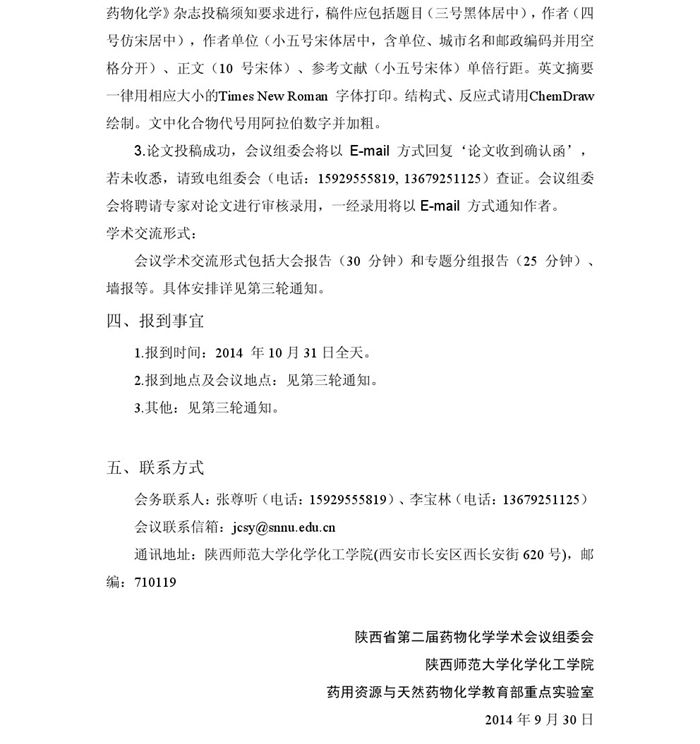 2014 年陕西省第二届药物化学学术会议(第二轮通知)