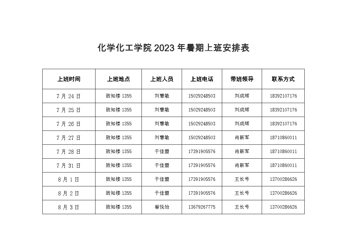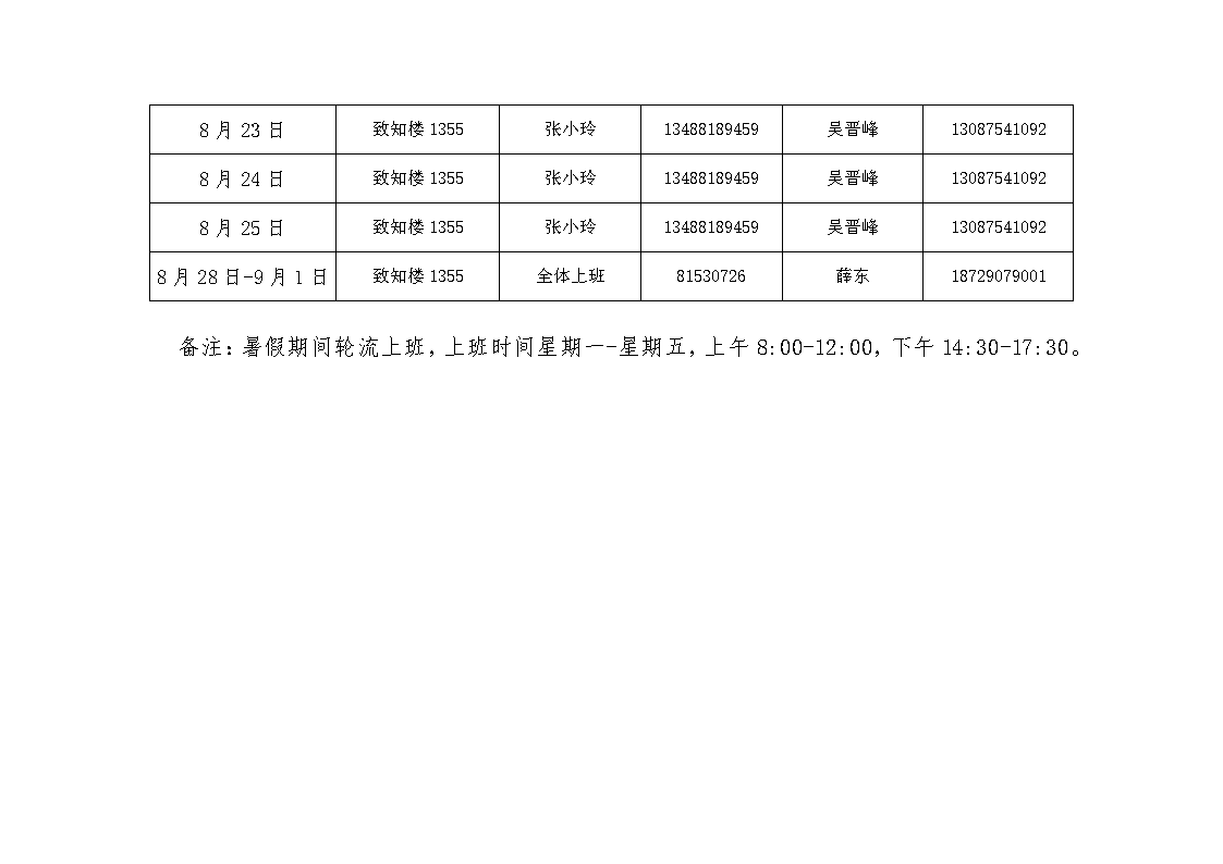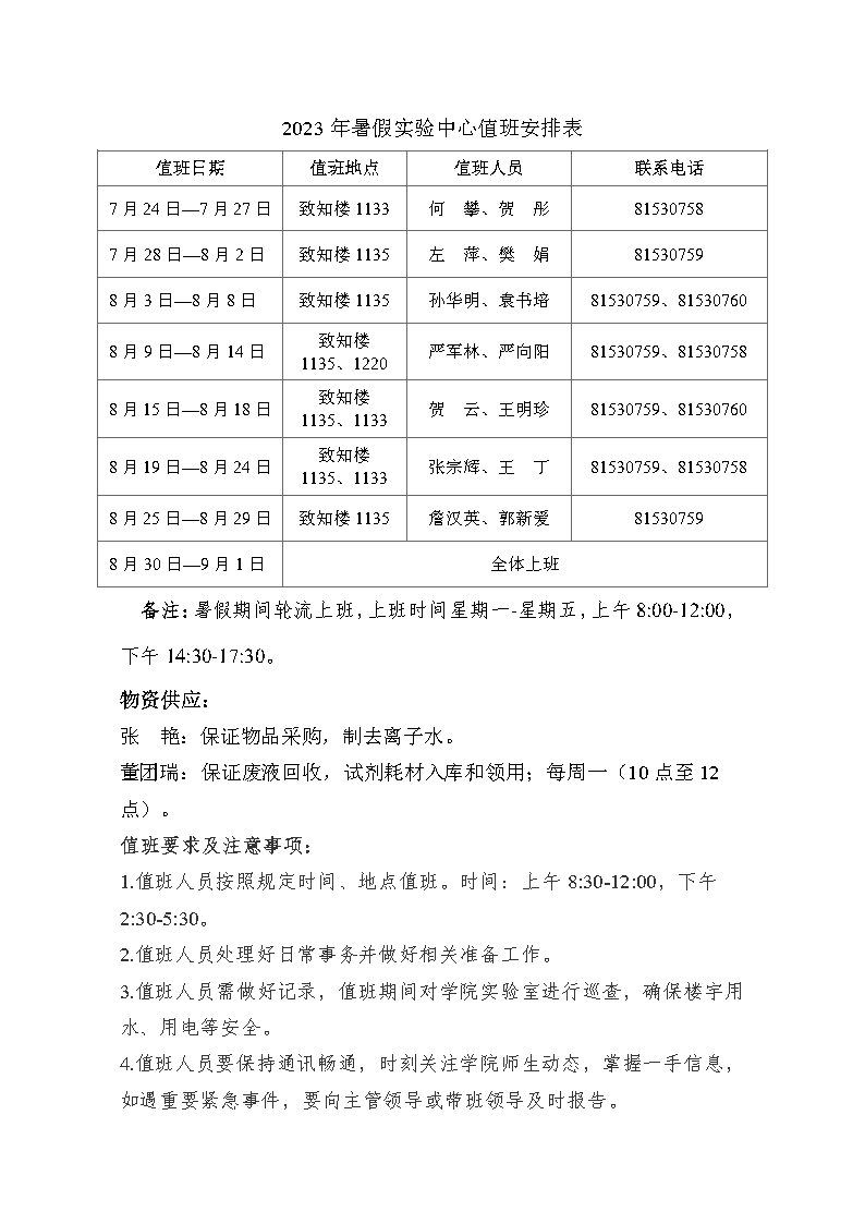 十博(10bet)亚洲官方网站 2023年暑假值班安排表