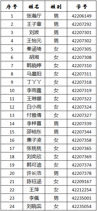 根据教务处《关于做好2022级“人文科学试验班”“理科试验班”中期考核及二次选拔工作的通知》和《十博(10bet)亚洲官方网站 2022级化学笃学班中期考核和二次选拔实施办法》,十博 对2022级化学笃学班进行了中期考核,现将结果予以公示,公示时间:2023年10月7日-10月9日。十博(10bet)亚洲官方网站 24名学生通过考核,结果如下(按照学号顺序排序),现予以公示。如有异议者,请与十博 党委副书记、纪委书记贾颍辉同志联系,联系电话:029-81530813,邮箱:[email protected]。