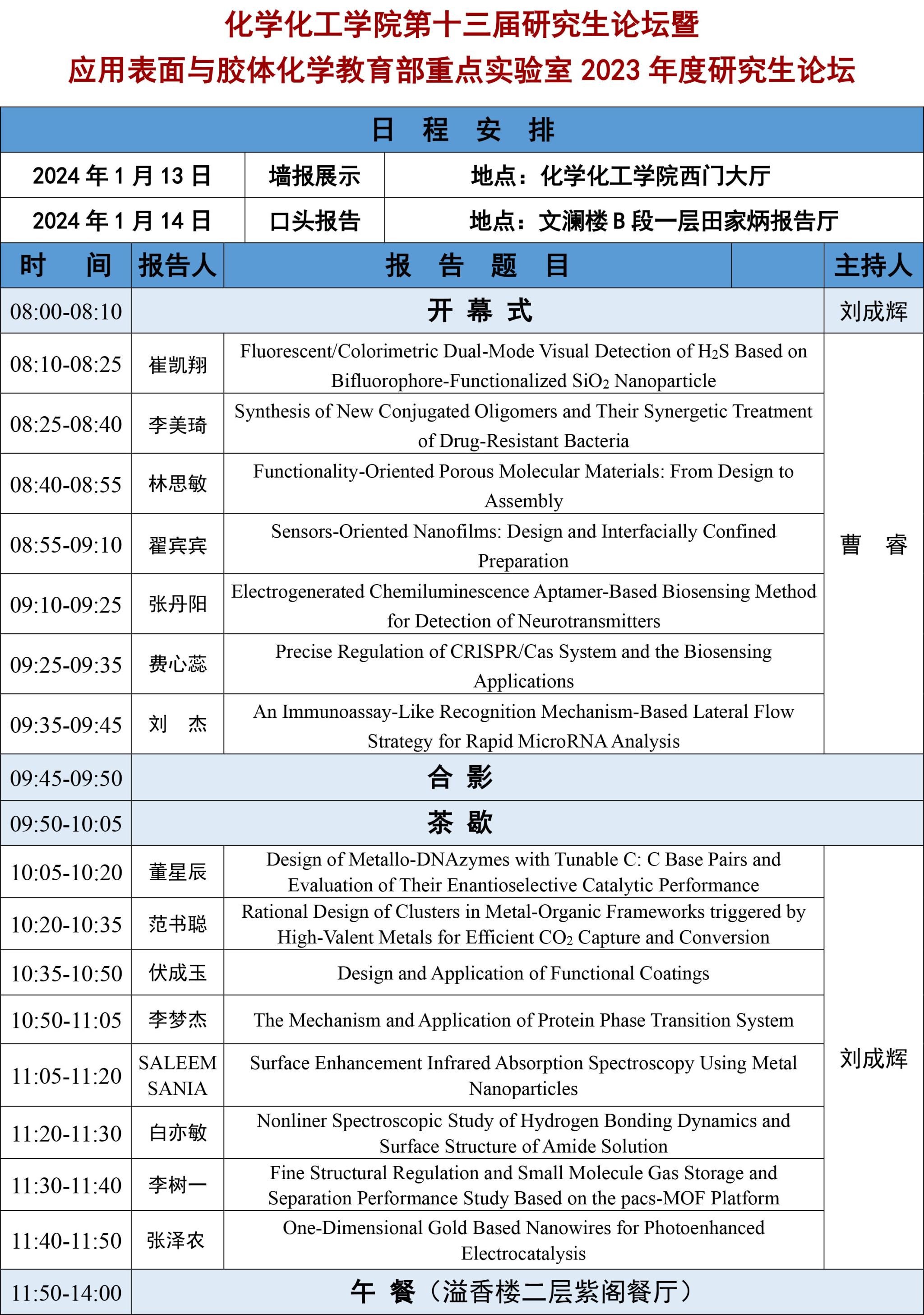 “第十三届研究生学术论坛暨应用表面与胶体化学教育部重点实验室2023年度研究生论坛”,诚挚的邀请十博