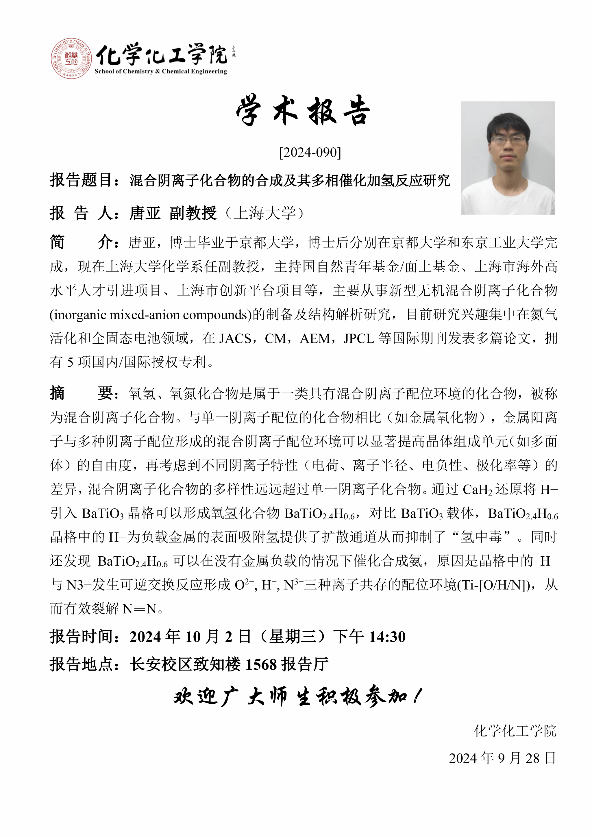地址:陕西师范大学长安校区致知楼一段