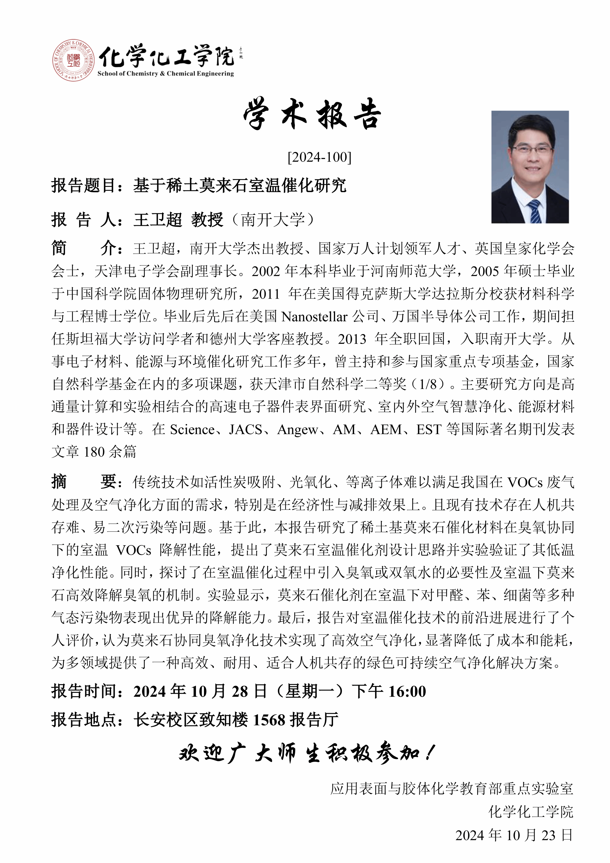 地址:陕西师范大学长安校区致知楼一段