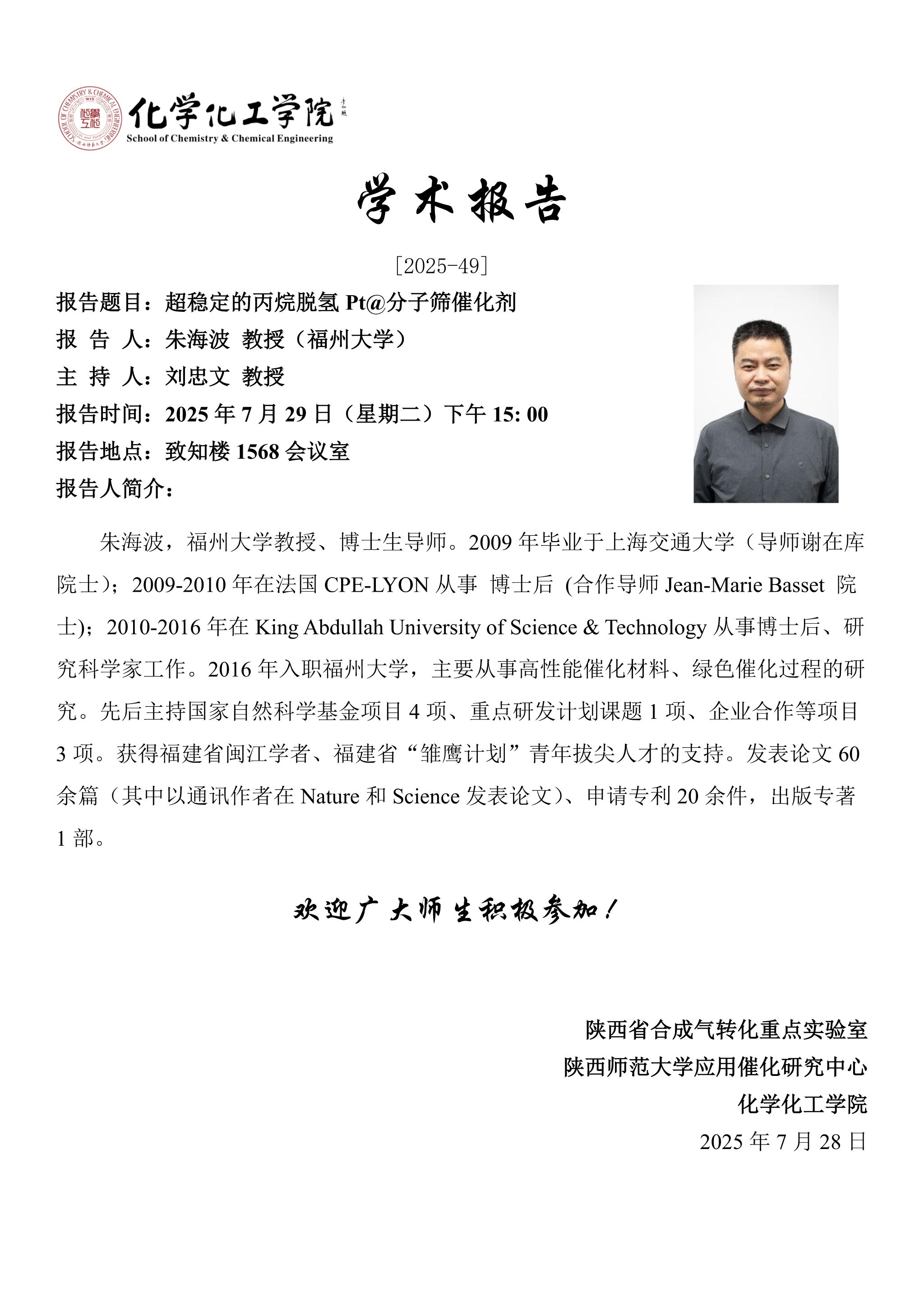 地址:陕西师范大学长安校区致知楼一段