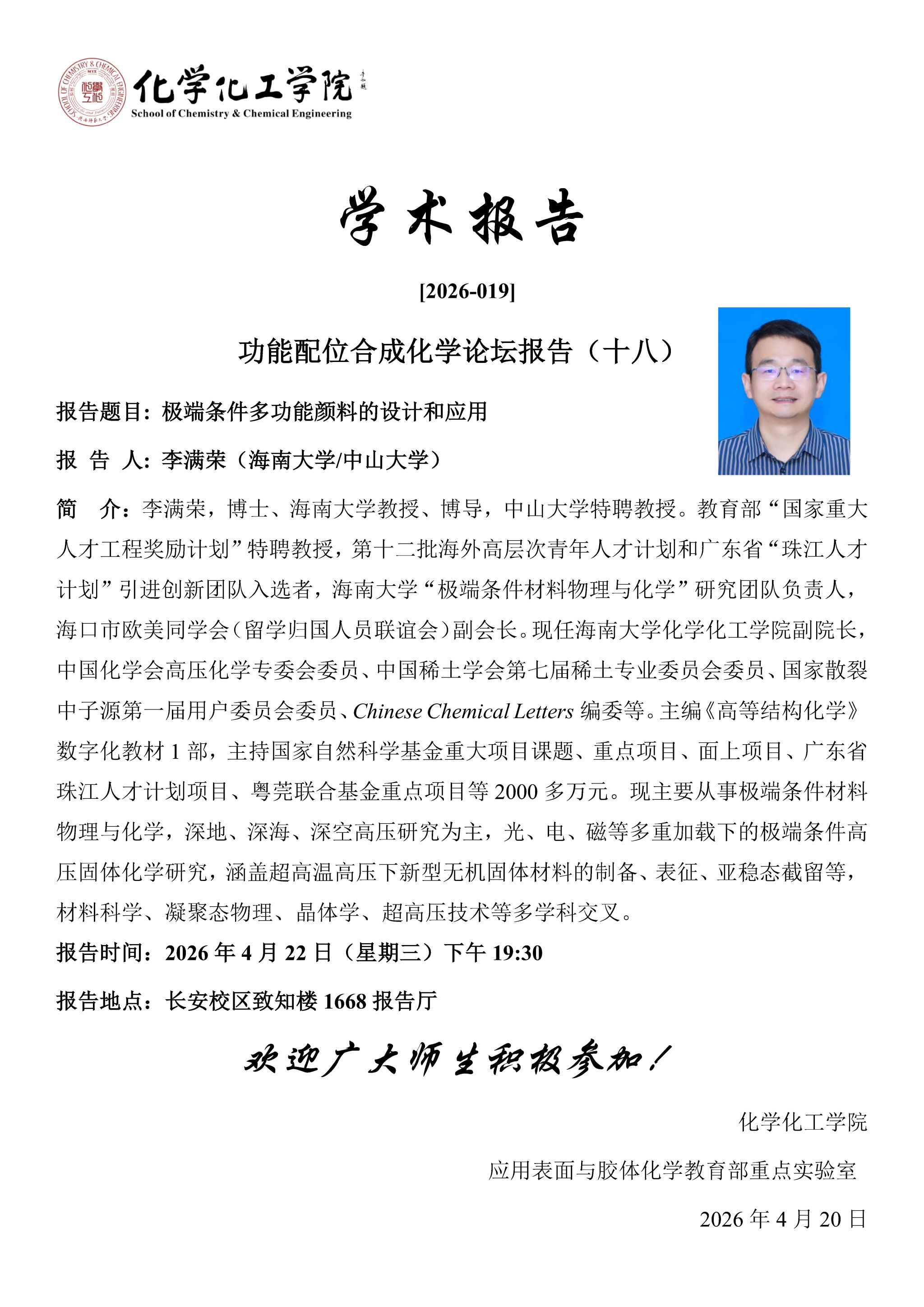 地址:陕西师范大学长安校区致知楼一段