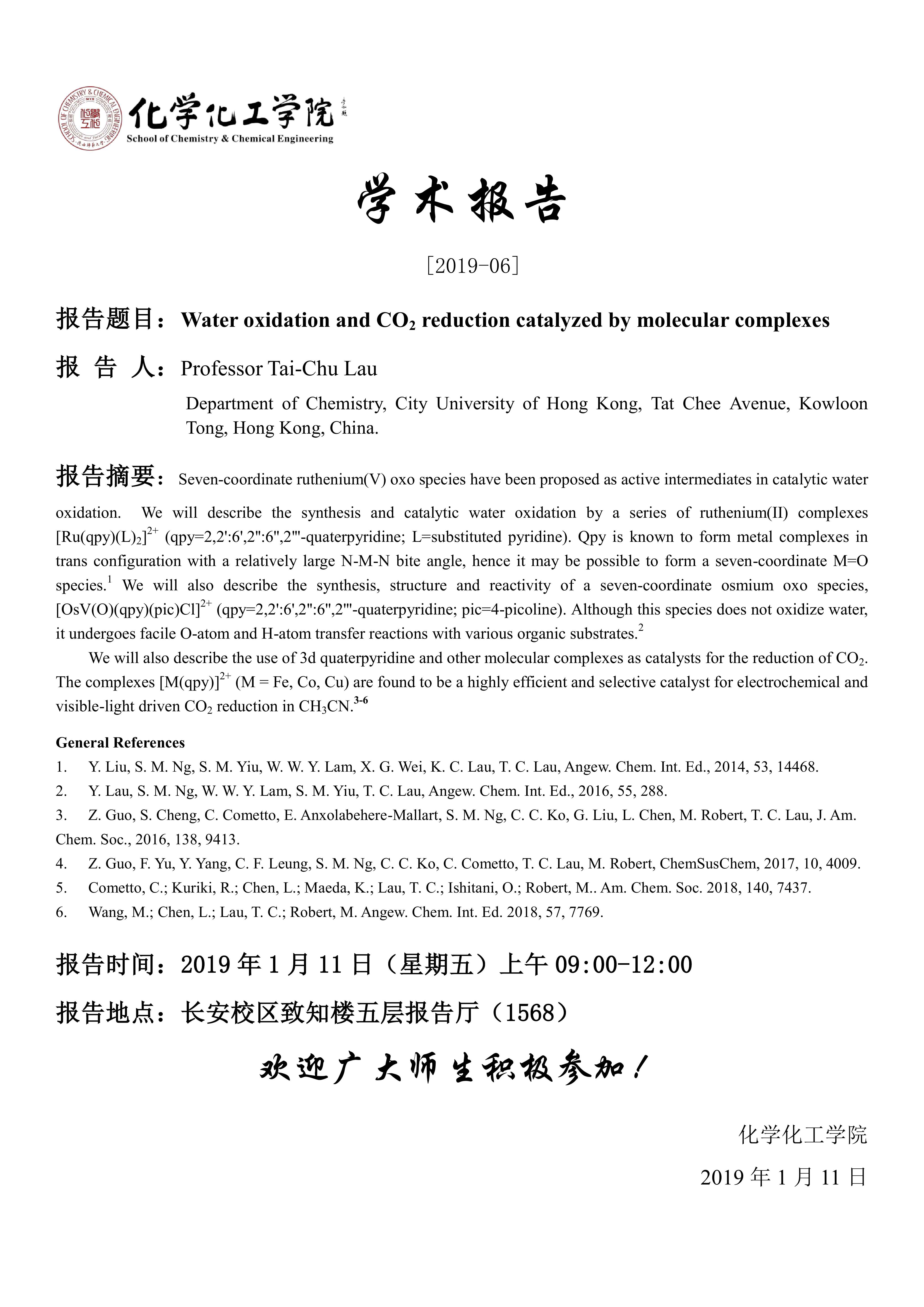 Water oxidation and CO2 reduction catalyzed by molecular complexes