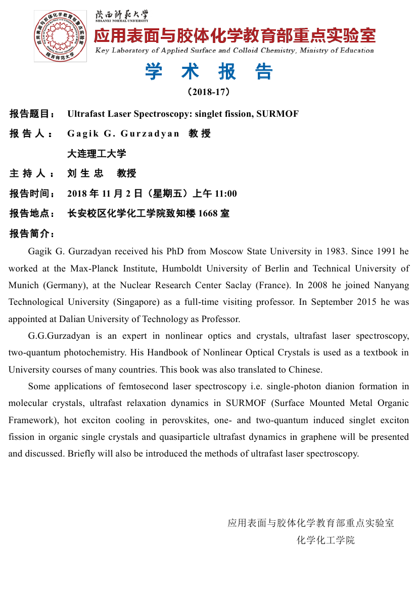 地址:陕西师范大学长安校区致知楼一段