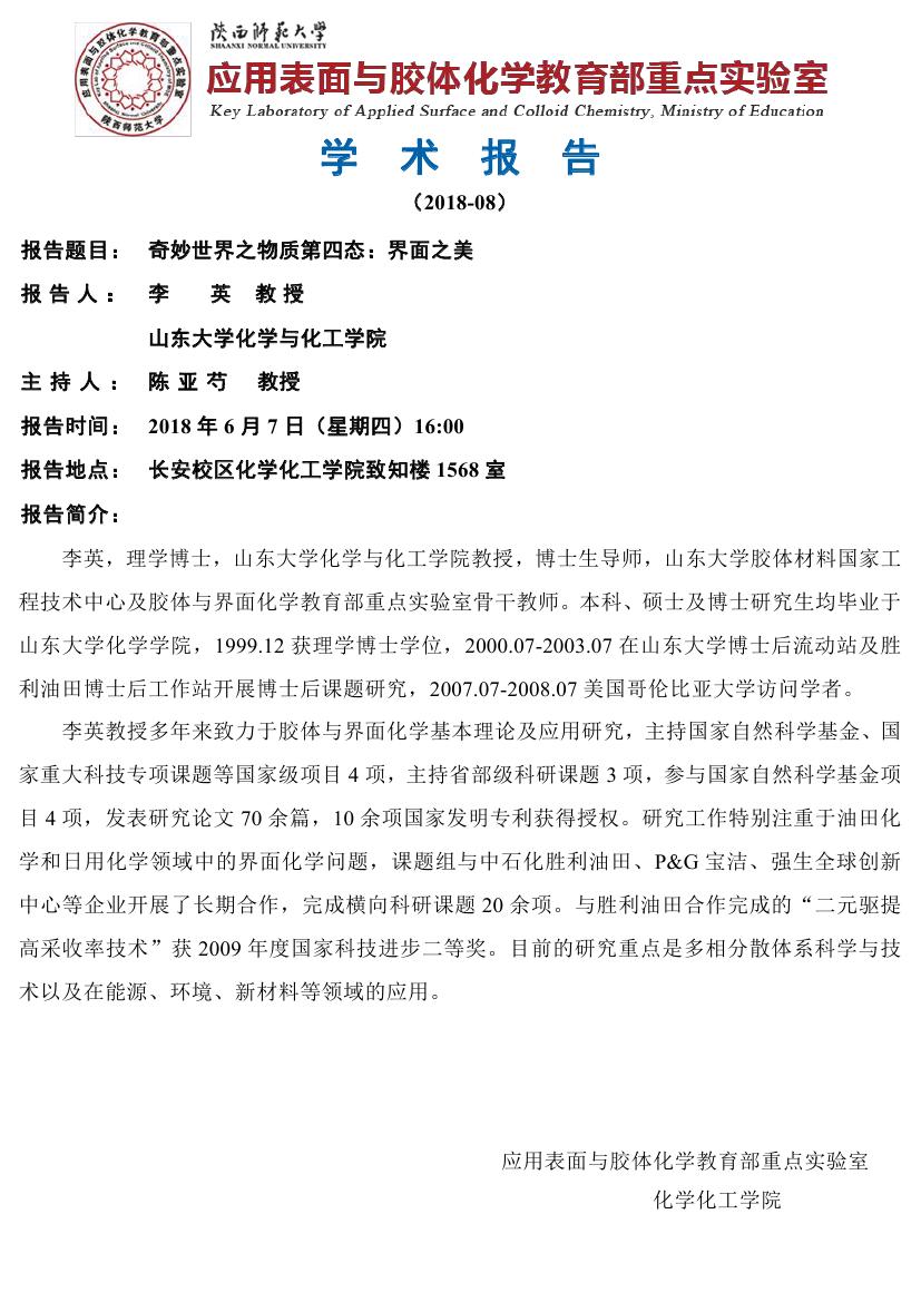 地址:陕西师范大学长安校区致知楼一段