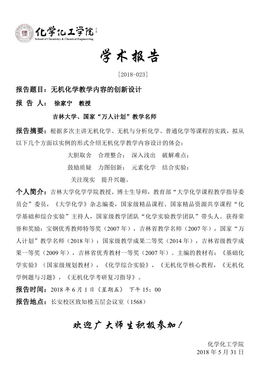 地址:陕西师范大学长安校区致知楼一段