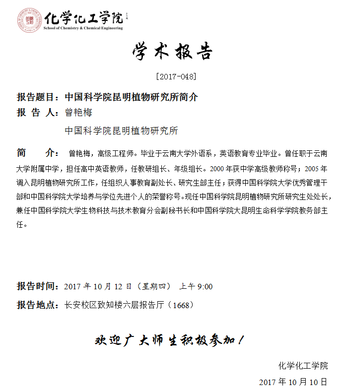 地址:陕西师范大学长安校区致知楼一段