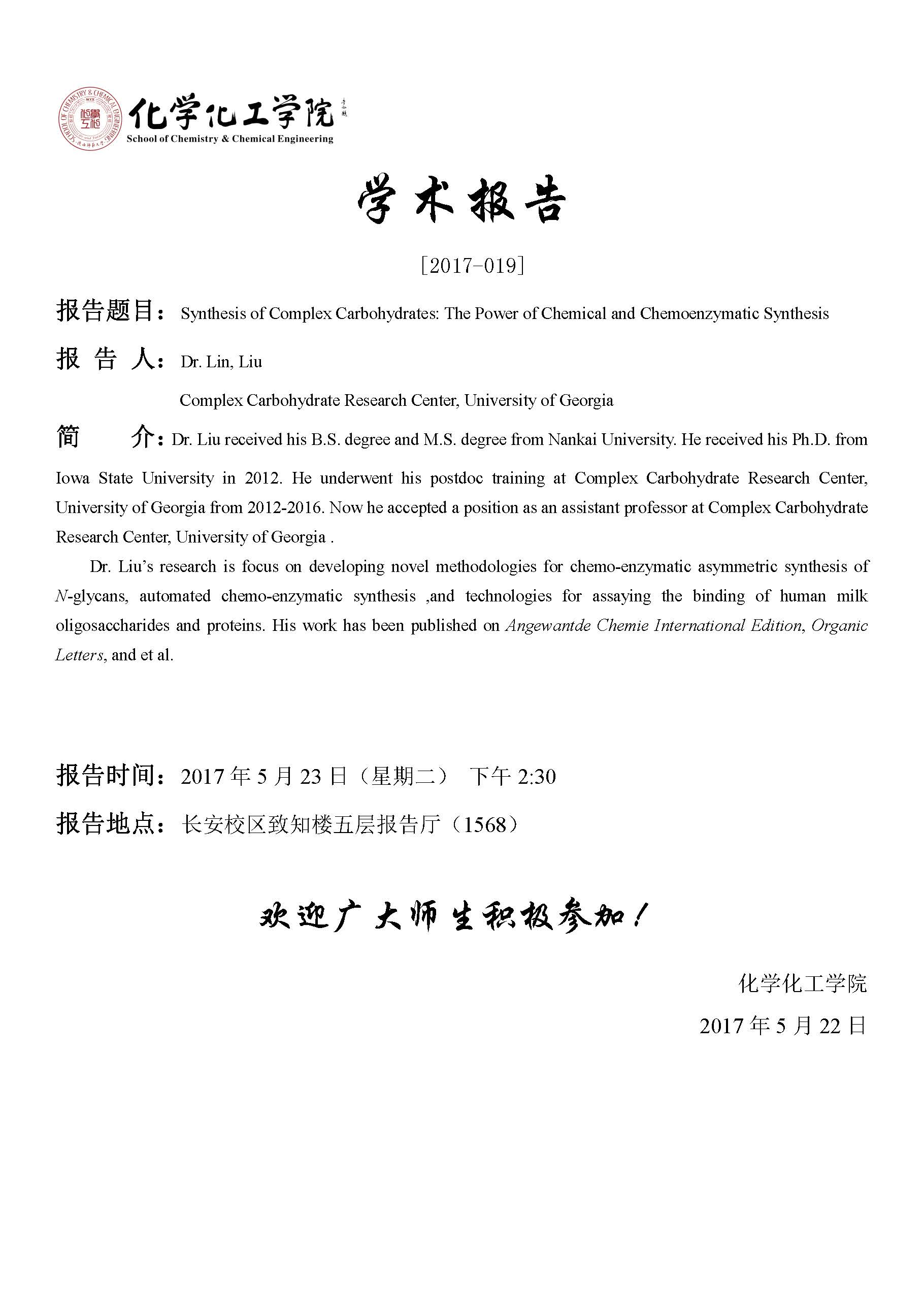 Dr. Lin, Liu教授学术报告[2017-019]