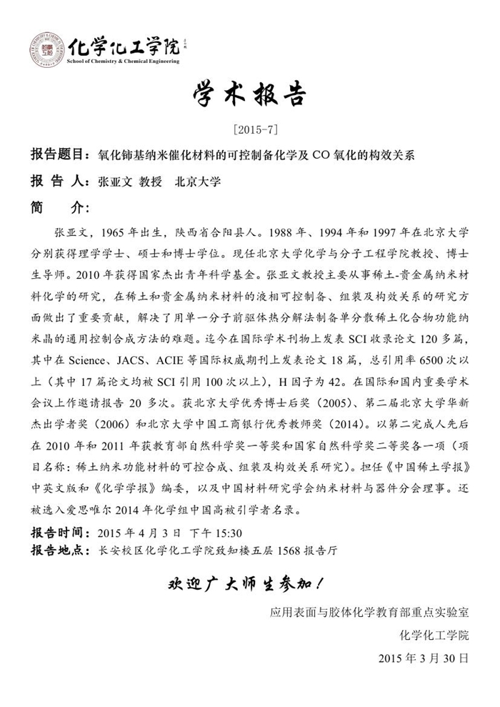 学术报告预告[2015-07]