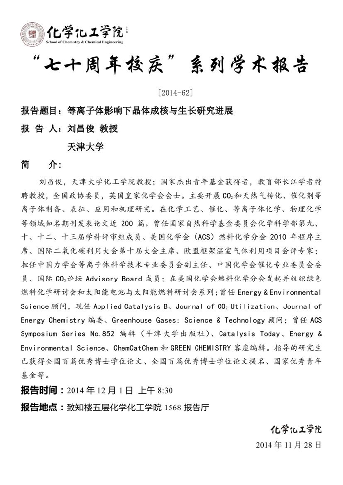 “七十周年校庆系列讲座” [2014-62]