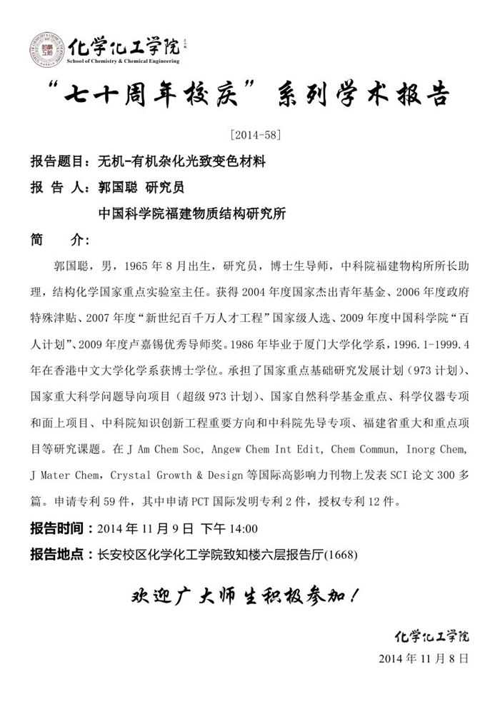 “七十周年校庆系列讲座” [2014-58]