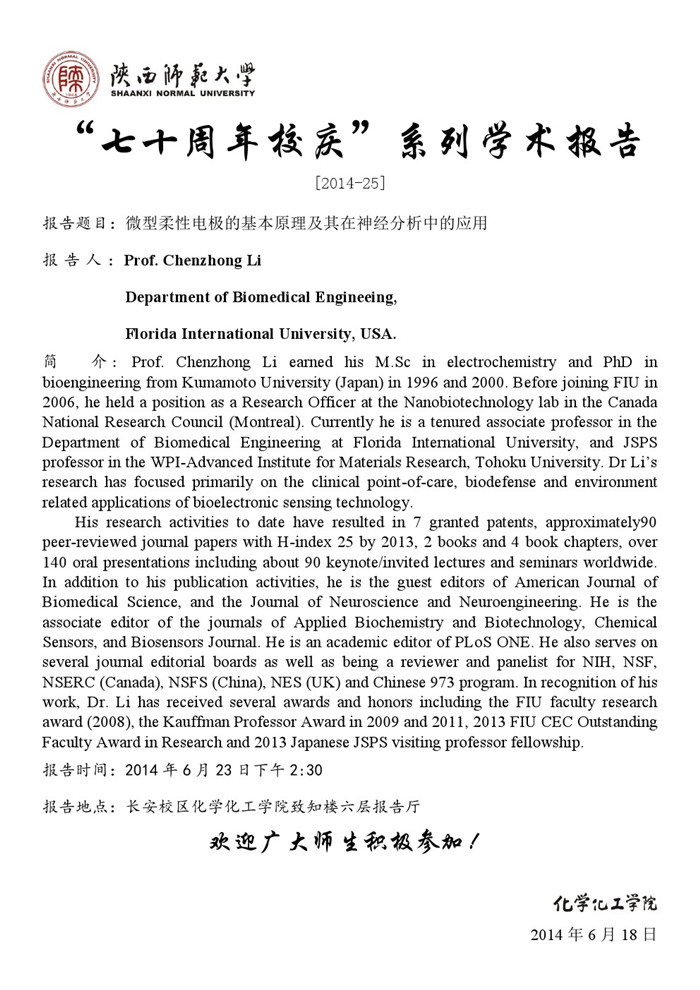 地址:陕西师范大学长安校区致知楼一段