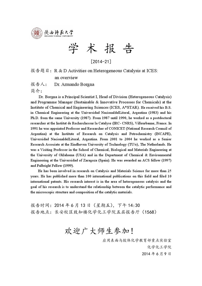 地址:陕西师范大学长安校区致知楼一段