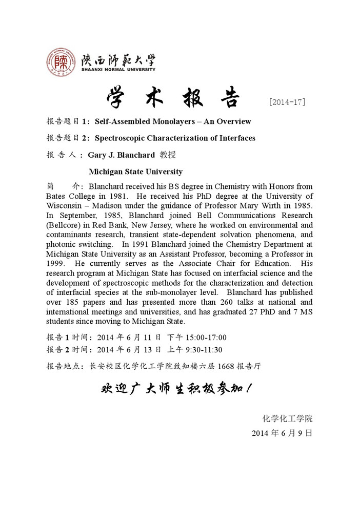 地址:陕西师范大学长安校区致知楼一段
