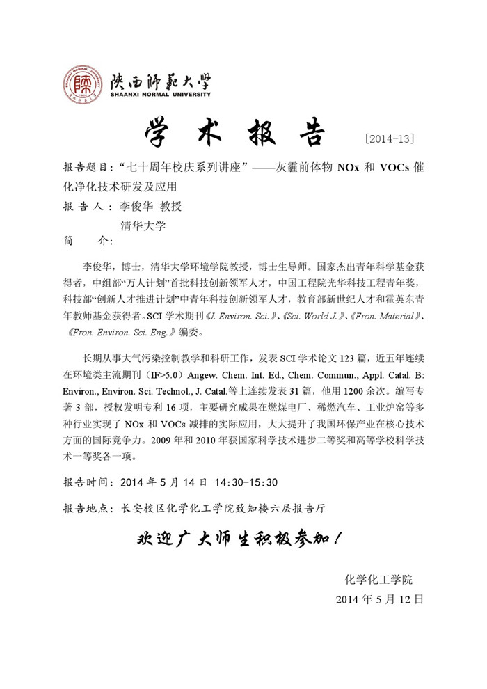 地址:陕西师范大学长安校区致知楼一段