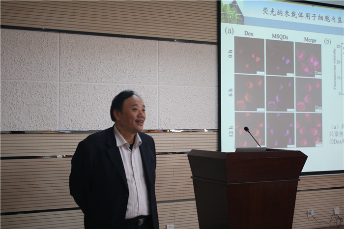 六层报告厅做了题为“生物纳米探针对肿瘤细胞及相关物的检测” 的学术报告。朱俊杰教授从研究细胞与纳米探针和界面的相互作用,利用光电化学技术,实现对疾病标志物及细胞内容物的灵敏检测入手,详细介绍了该研究组在肿瘤细胞及相关物检测中的研究进展。