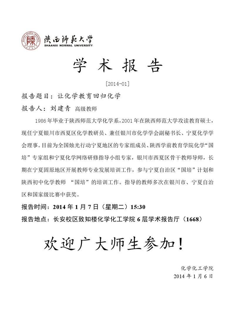 地址:陕西师范大学长安校区致知楼一段