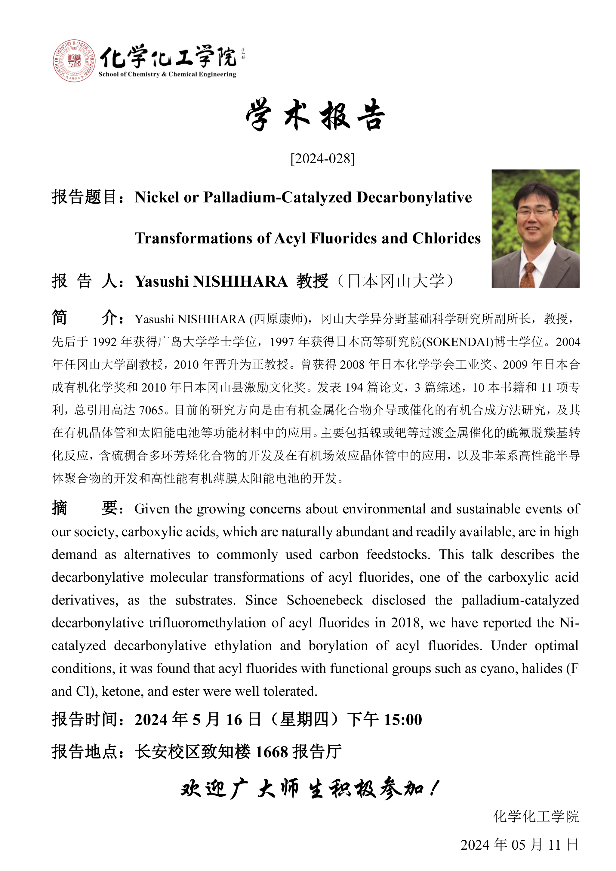 地址:陕西师范大学长安校区致知楼一段