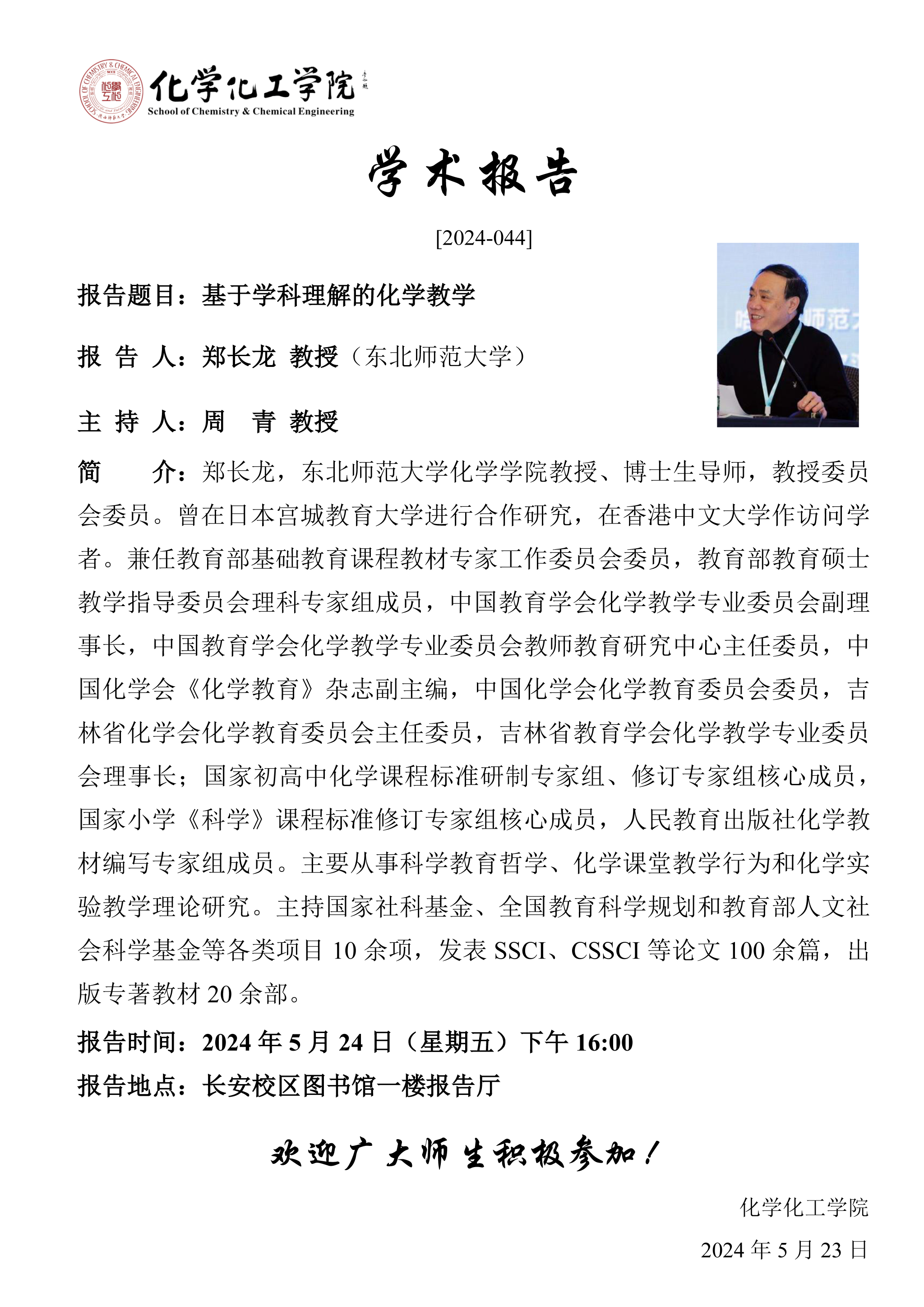 地址:陕西师范大学长安校区致知楼一段